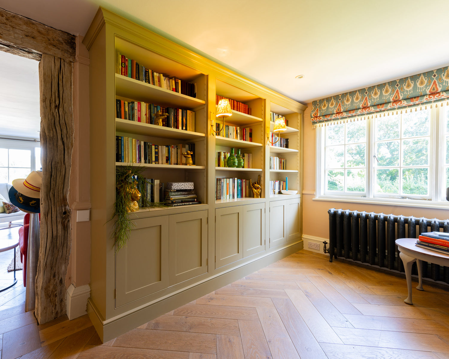 We couldn't be more pleased with the work that Frank has done. It looks fantastic and I would hugely recommend him to anyone considering something similar. Along with our input, Frank designed floor to ceiling bookshelves and cupboards, incorporating pullout drawers for filing, along with several other features, then built the entire unit from scratch and installed it. Thank you.